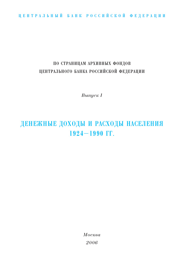 Выпуск 1. Денежные доходы и расходы населения 1924–1990 г.г.