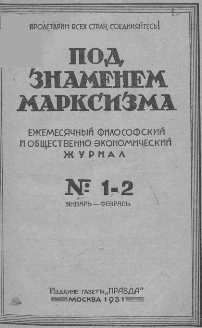 Под знаменем марксизма. Ежемесячный философский и общественно экономический журнал. №№1-2-1931 г.