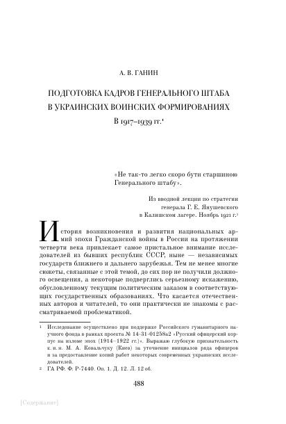 Подготовка кадров Генерального штаба в украинских воинских формированиях в 1917-1939 гг.