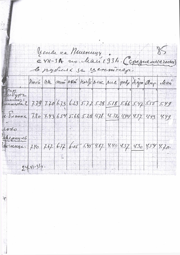 Таблица среднемесячных цен на пшеницу в период с июля 1930 г. по май 1931 г. 24 июня 1931 г.