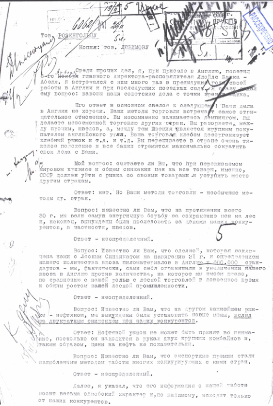 Отчет НКВТ о переговорах с представителями Ллойдс банка. 2 февраля 1931 г.