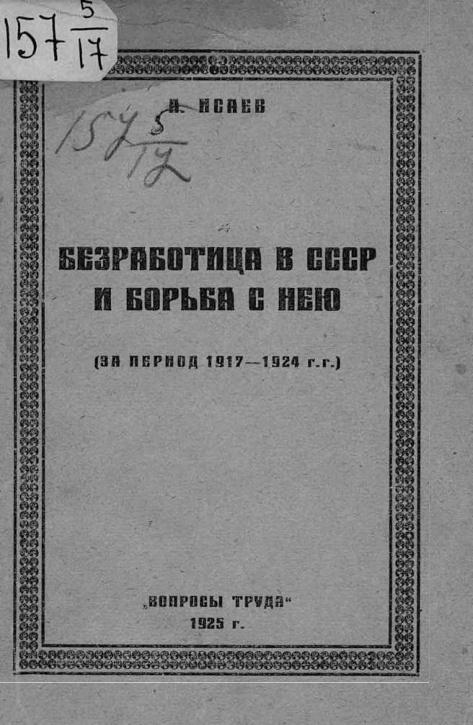 Безработица в СССР и борьба с нею (За период 1917-1924 г.г.)