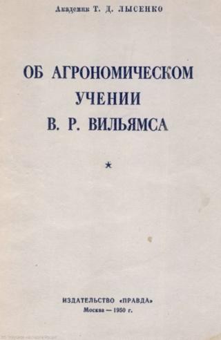 Об агрономическом учении В.Р. Вильямса