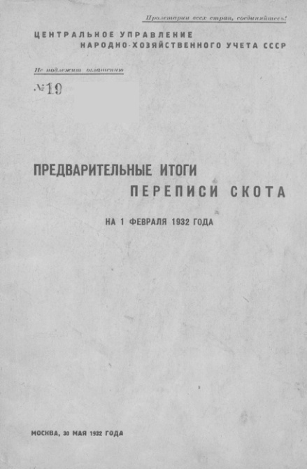 Предварительные итоги переписи скота на 1 февраля 1932 г.