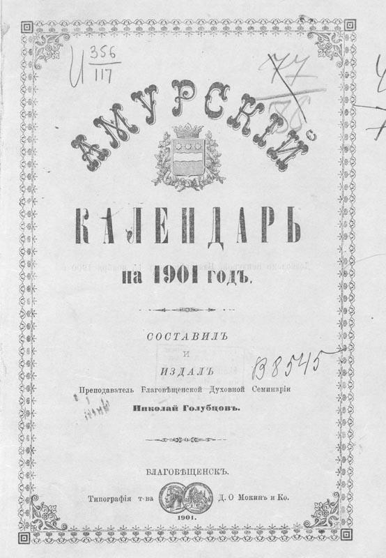 Благовещенск. Типография т-ва Д.О. Мокин и Ко Зейская-148. 1901