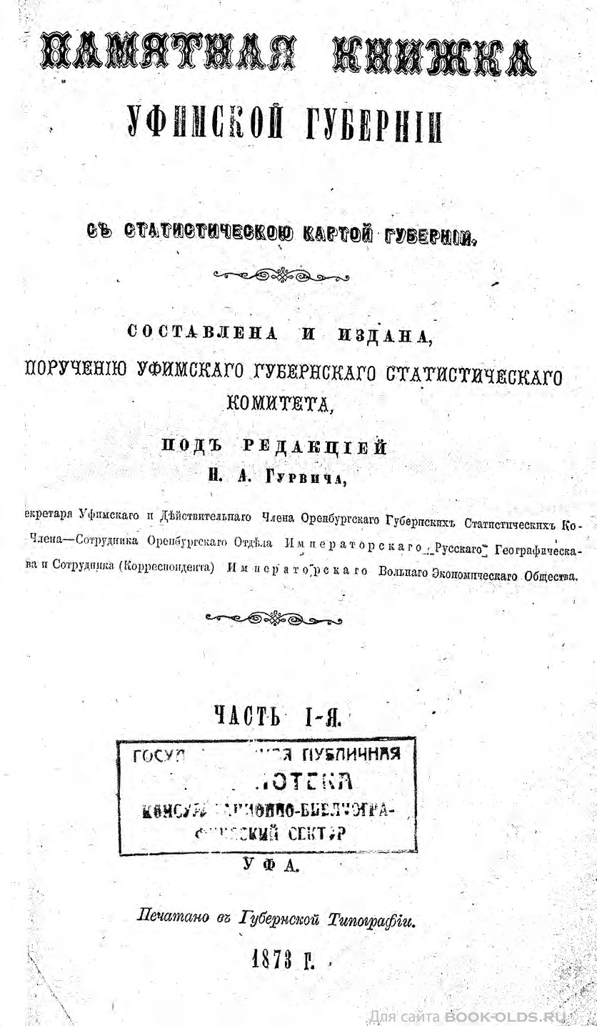 Уфа. Печатано в Губернской Типографии
