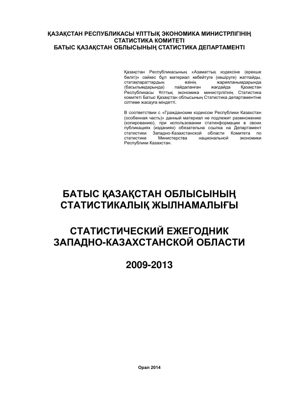 Статистический ежегодник Западно-Казахстанской области 2009-2013