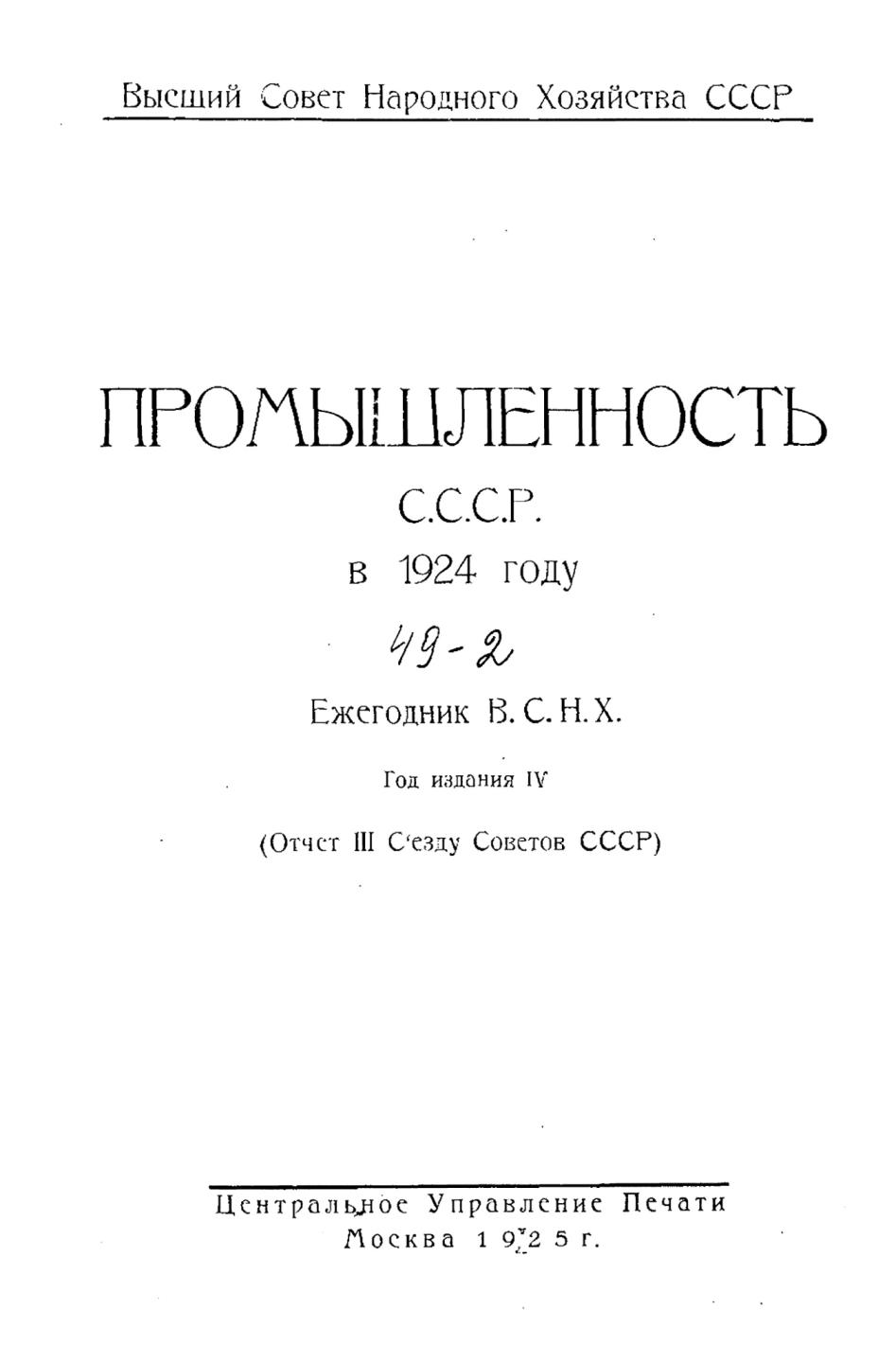 Промышленность СССР в 1924 году. Ежегодник ВСНХ