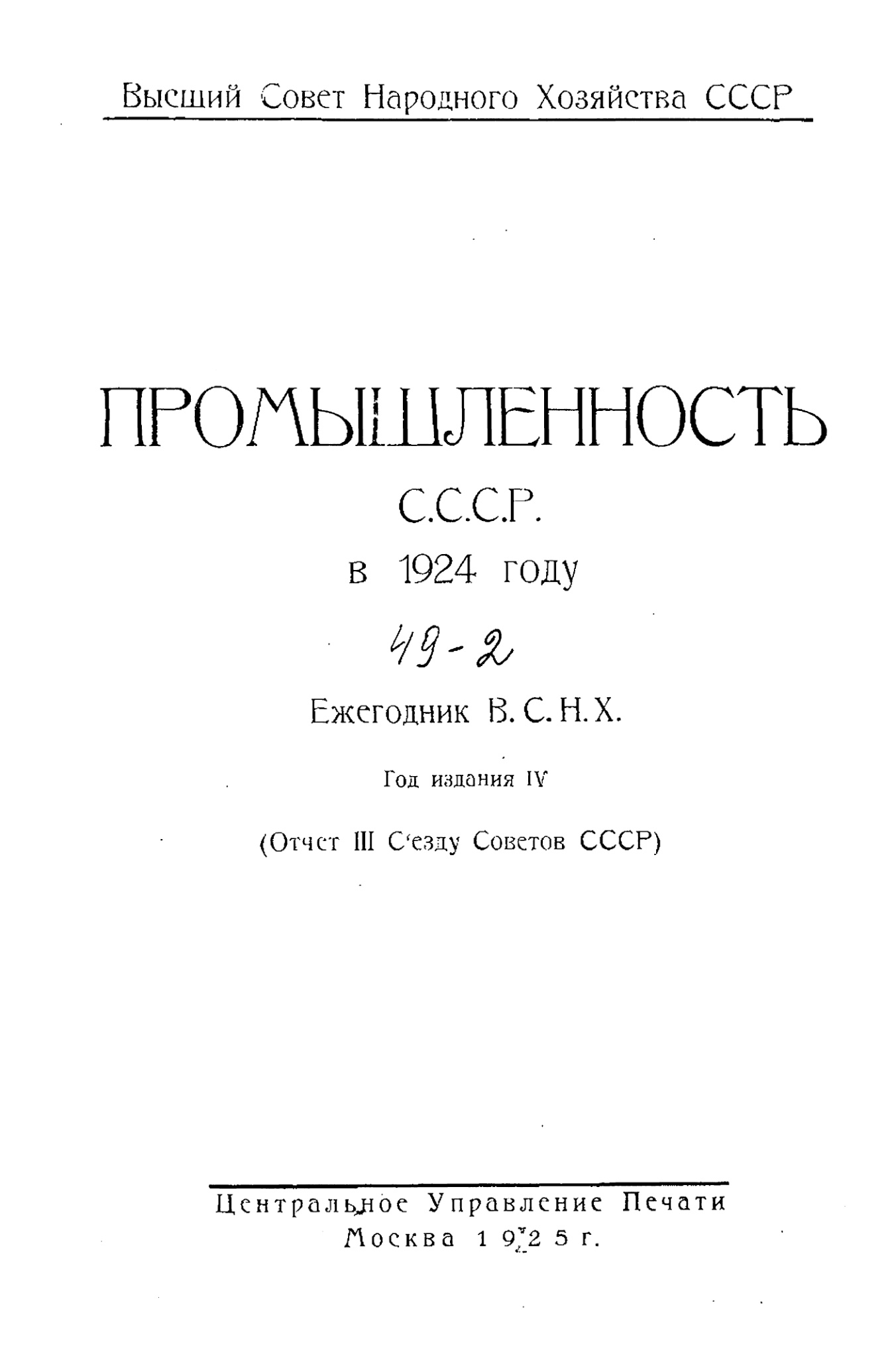 Центральное Управление Печати ВСНХ СССР. Москва, 1925 г.