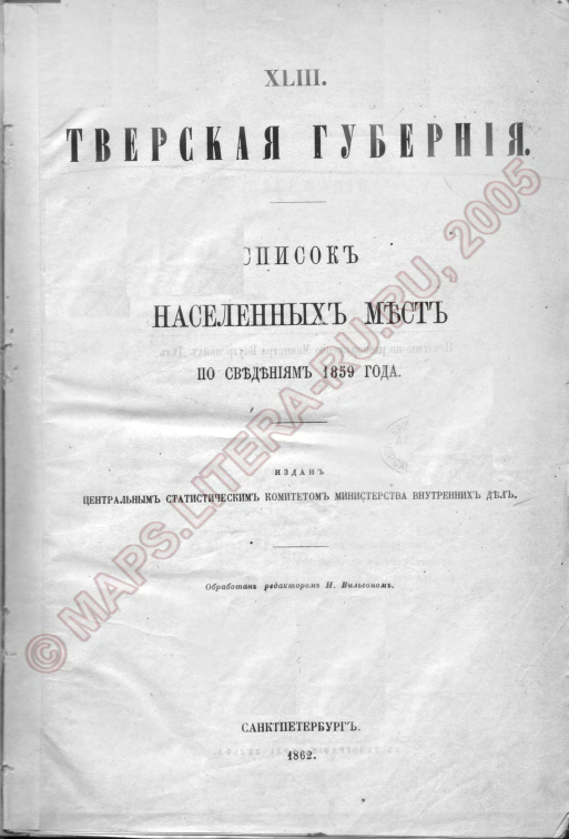 Список населенных мест Тверской губернии 1859