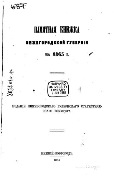 Памятная книжка Нижегородской губернии на 1865 год