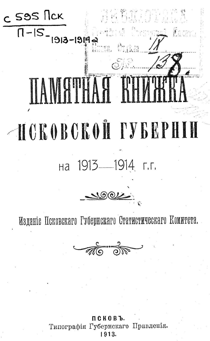 Памятная книжка Псковской губернии на 1913 и 1914 г.г.