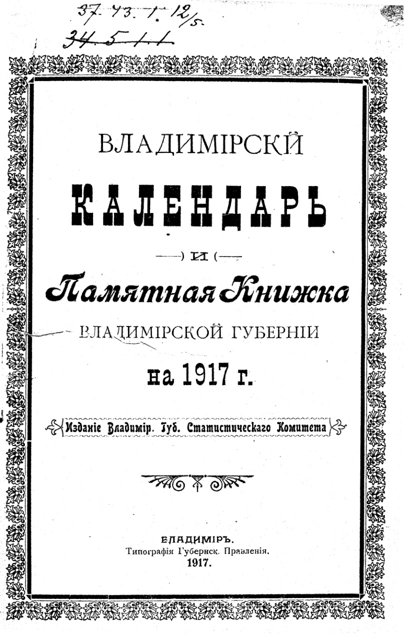 Владимирский календарь и памятная книжка на 1917 год