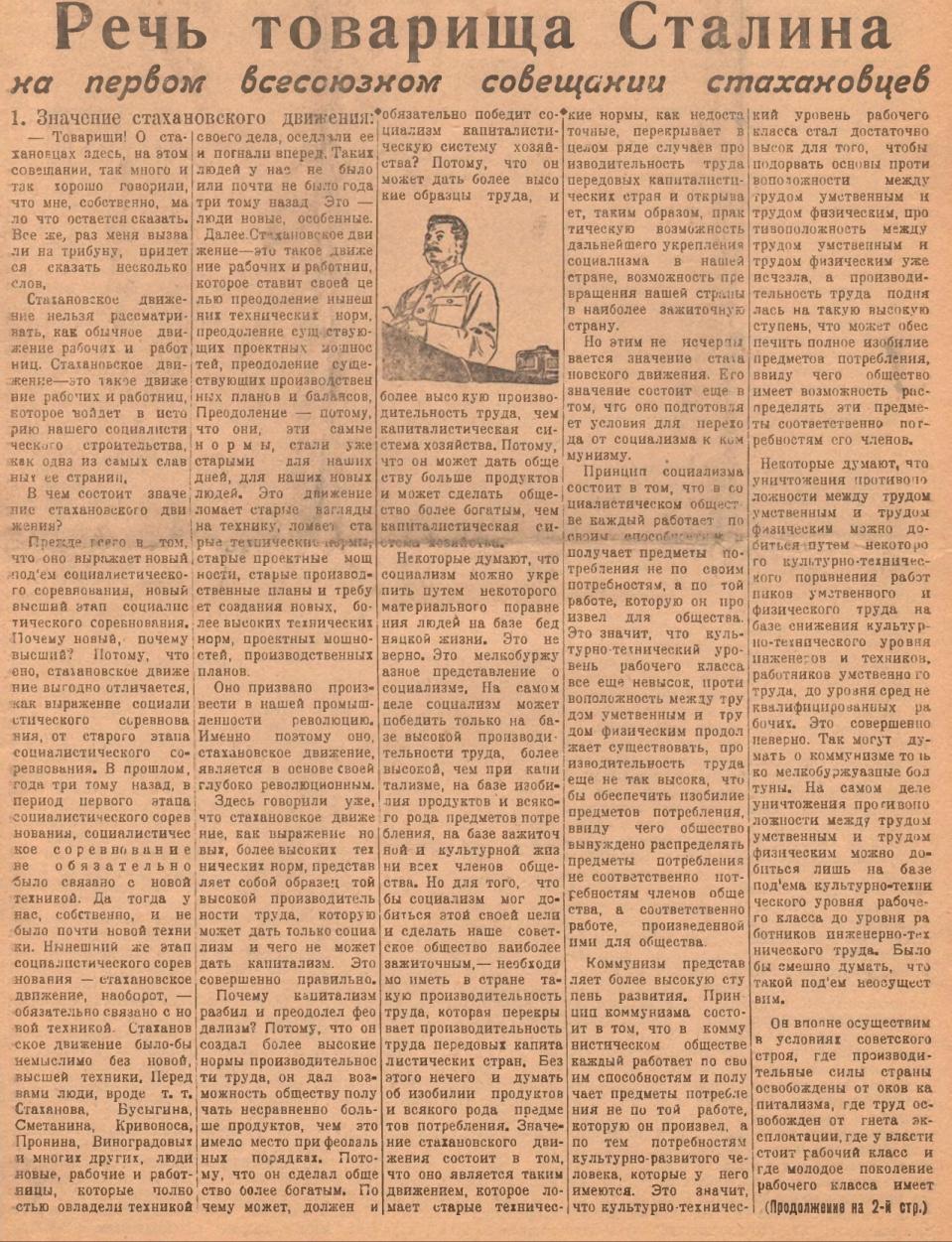 Речь товарища Сталина на первом всесоюзном совещании стахановцев. 17 ноября 1935 года.