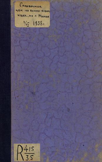 Справочник цен на винно-водочные изделия, пиво, газированную воду, мороженое по г. Москве (по состоянию на 1 июня 1938 г.)