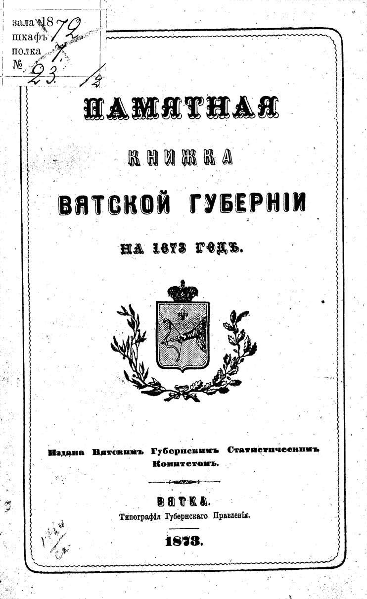 Памятная книжка Вятской губернии на 1873 год