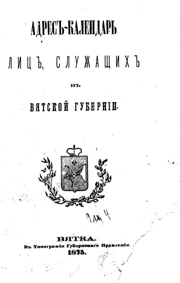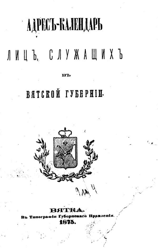 Вятка. В Типографии Губернского Правления, 1875
