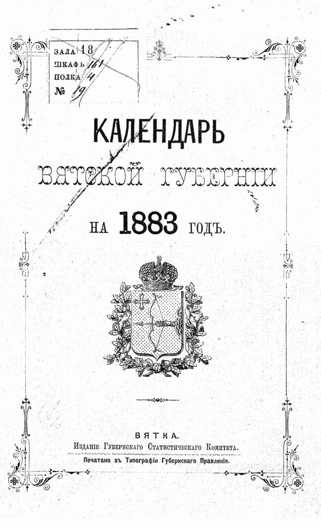 Календарь Вятской губернии на 1883 год