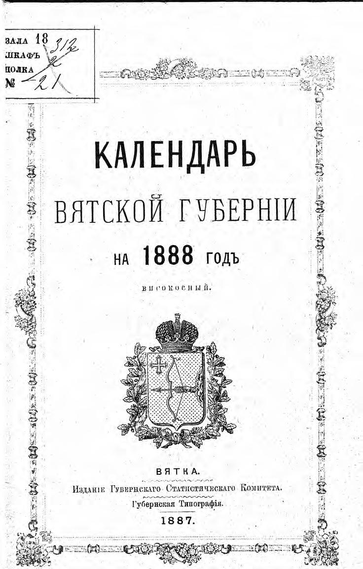 Календарь Вятской губернии на 1888 год