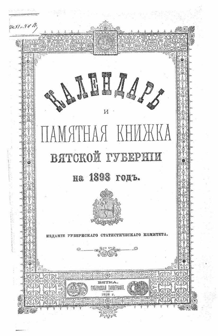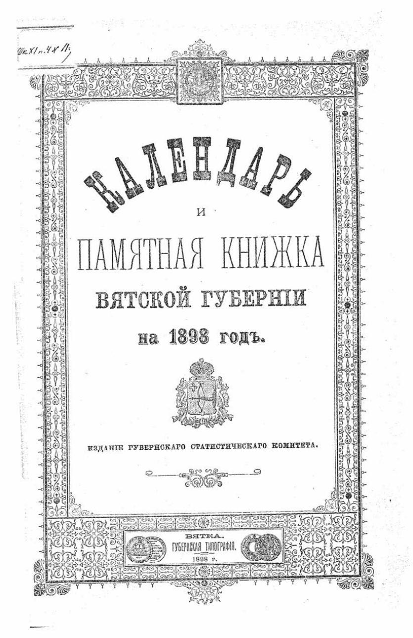 Календарь и Памятная книжка Вятской губернии на 1898 год