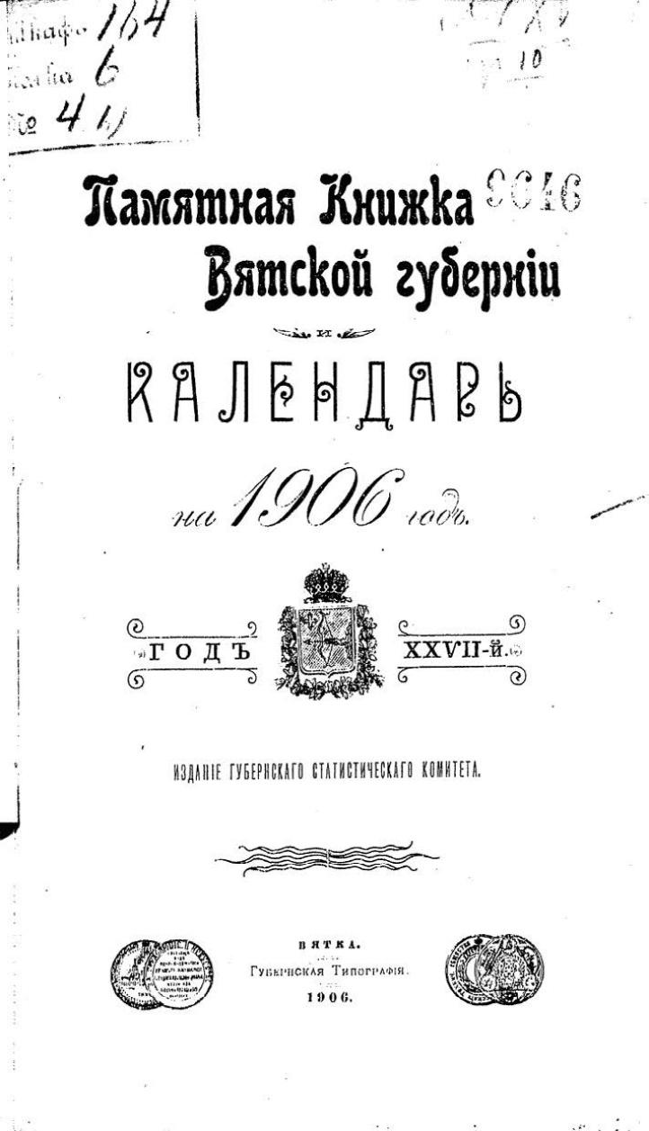 Памятная книжка Вятской губернии и календарь на 1906 год