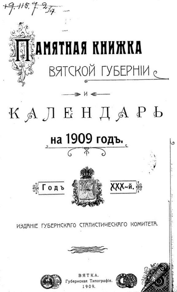 Памятная книжка Вятской губернии и календарь на 1909 год