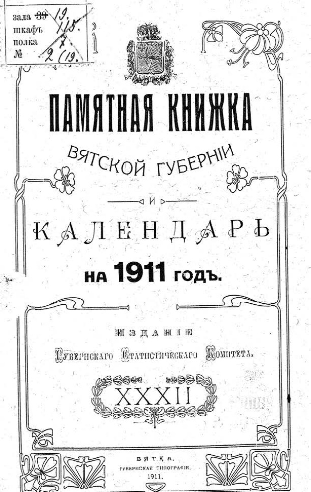 Памятная книжка Вятской губернии и календарь на 1911 год