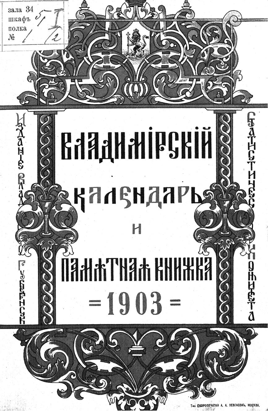 Владимирский календарь и памятная книжка 1903