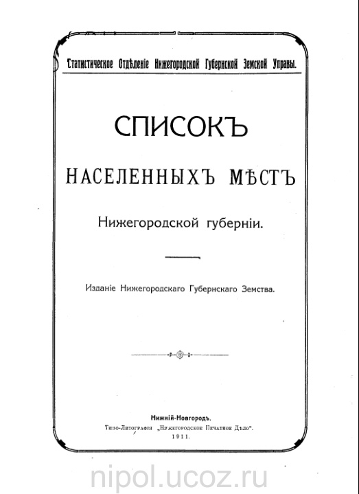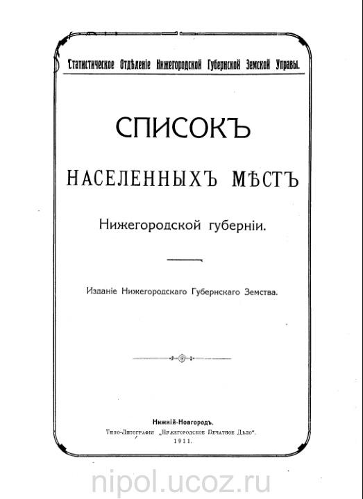 1911 Список населенных мест Нижегородской губернии