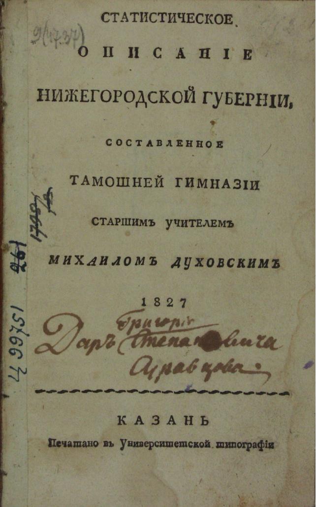 Статистическое описание Нижегородской губернии 1827