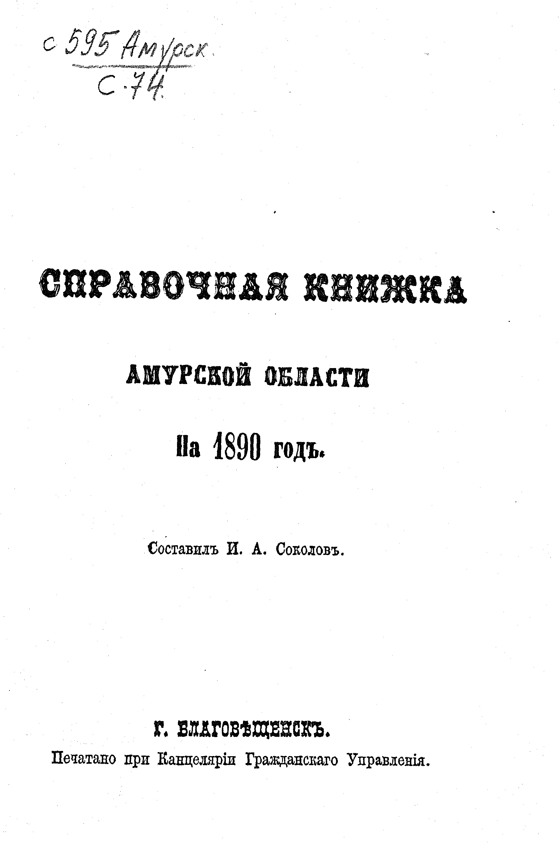 Благовещенск, Печатано при Канцелярии Гражданского Управления