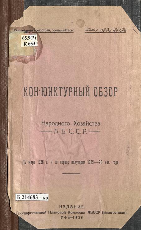 Конъюнктурный обзор народного хозяйства АБССР за март 1926 г. и за первое полугодие 1925-26 хоз. года