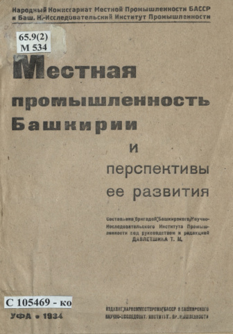 1934 Местная промышленность Башкирии и перспективы ее развития