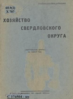 Хозяйство Свердловского округа - контрольные цифры на 1926-1927 г.г.