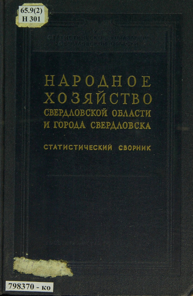 Государственное Статистическое Издательство. Свердловск, 1956