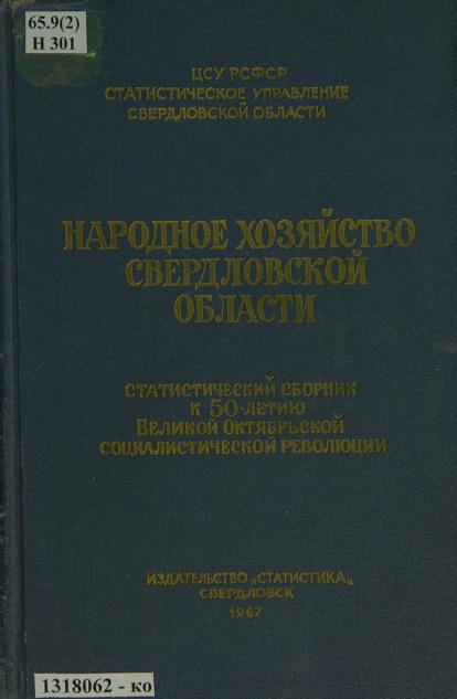 Народное хозяйство Свердловской области - статистический сборник К 50-летию Великой Октябрьской социалистической революции
