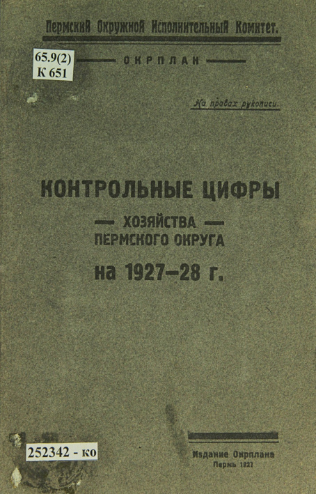 Издание Окрплана. Пермь, 1927