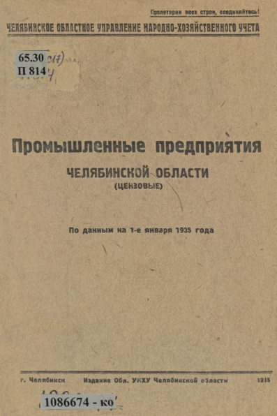 Промышленные предприятия Челябинской области (цензовые) по данным на 01-01-1935
