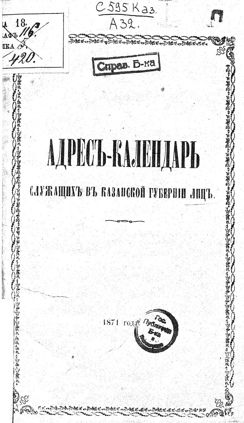 1871 Адрес-календарь служащих в Казанской губернии лиц