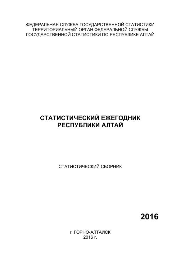 Статистический ежегодник Республики Алтай 2016