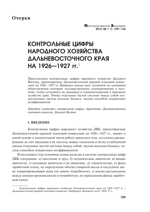 Контрольные цифры народного хозяйства Дальневосточного края на 1926-1927 гг