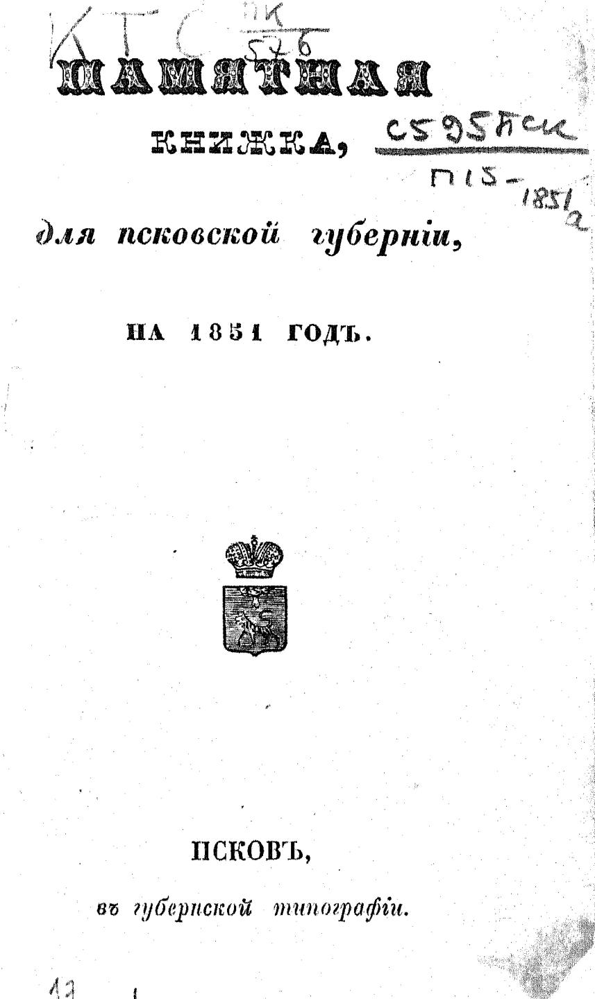 Памятная книжка для Псковской губернии на 1851 год