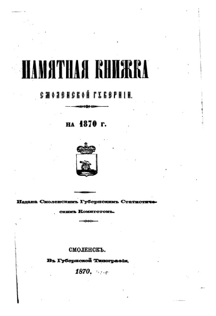 Памятная книжка Смоленской губернии на 1870 год