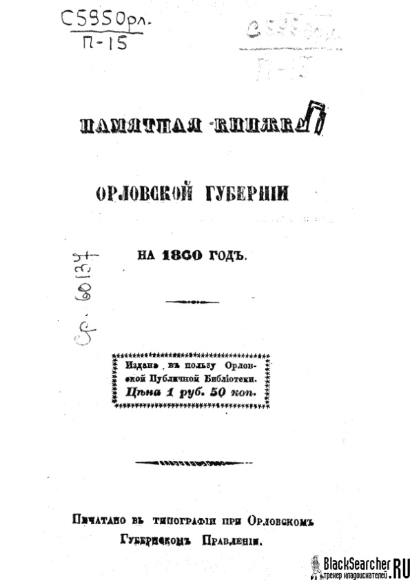 Памятная книжка и адрес-календарь Орловской губернии [1860-1916]