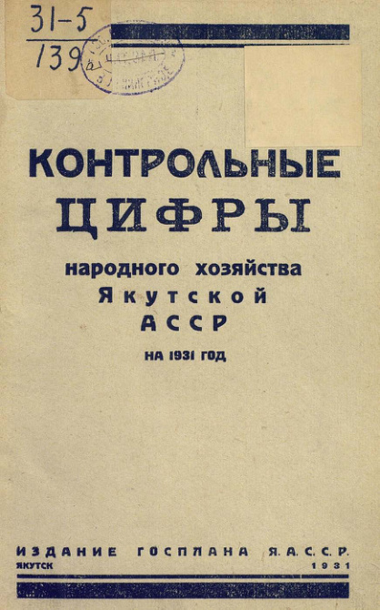 Контрольные цифры народного хозяйства ЯАССР 1931