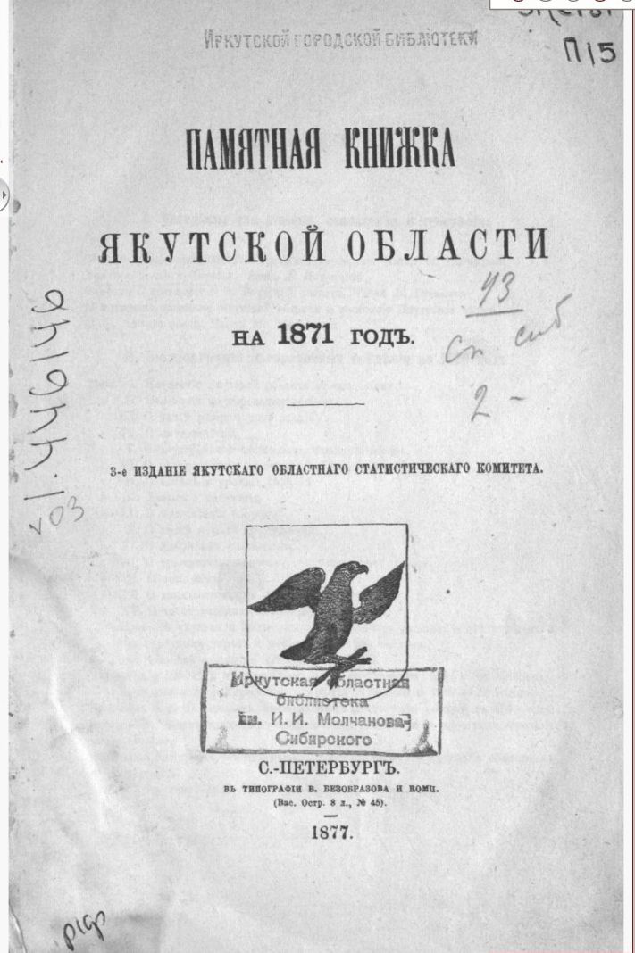 1871 Памятная книжка Якутской области