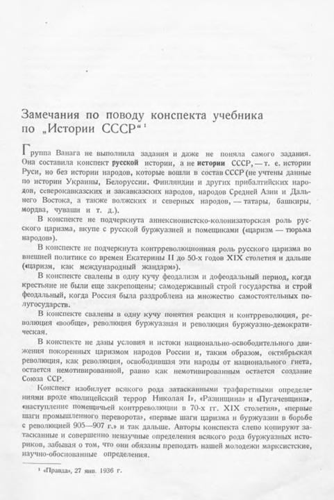 Замечания по поводу конспекта учебника по "Истории СССР". 1934 г.