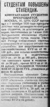Стипендии в учебных заведениях и на курсах. 1930 г.