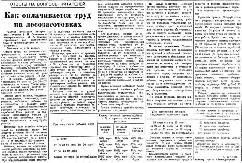 Как оплачивается труд на лесозаготовках. 1949 г.