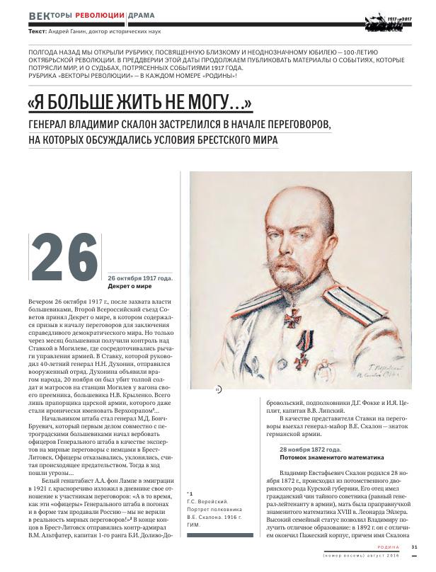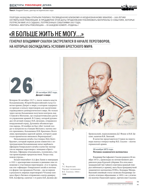 "Я больше жить не могу..." Генерал Владимир Скалон застрелился в начале переговоров, на которых обсуждались условия Брестского мира